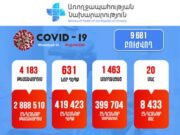 Հայաստանում փետրվարի 26-ին՝ ժամը 11:00-ի դրությամբ նոր կորոնավիրուսով վարակվելու 631 նոր դեպք է գրանցվել, վարակվածների ընդհանուր թիվը հասել է 419423 դեպքի: Ընդհանուր թեստերի թիվը...