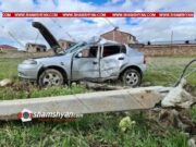 Կոտայքի մարզում Opel-ը տապալել է բետոնե էլեկտրասյուները և հայտնվել դաշտում. կա վիրավոր